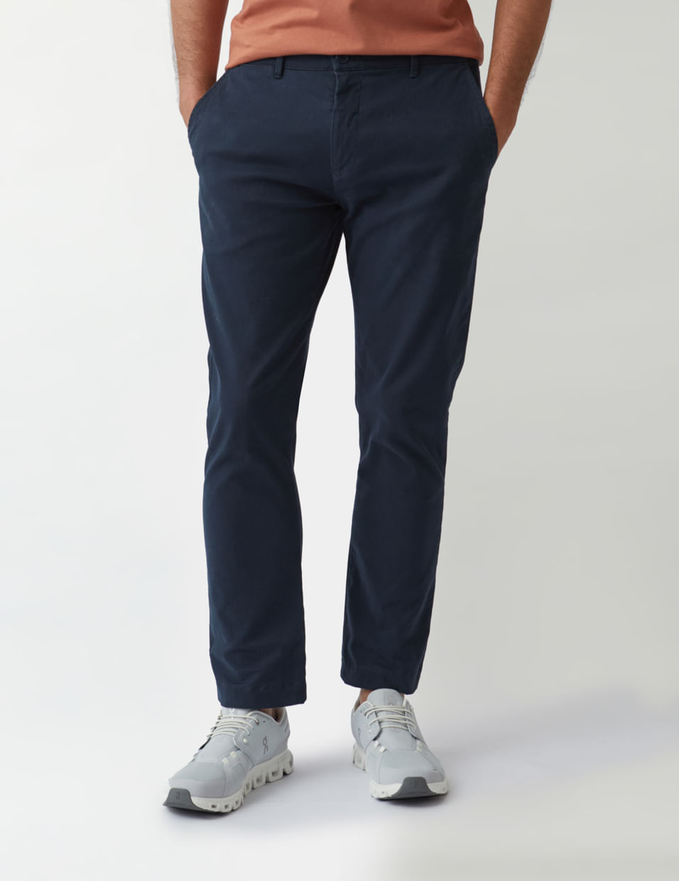 Além disso, a modelagem levemente mais ajustada na coxa, joelho e boca da calça faz toda a diferença para o seu visual. Esse aspecto é fundamental para tornar a calça chino uma peça necessária em qualquer guarda-roupa.