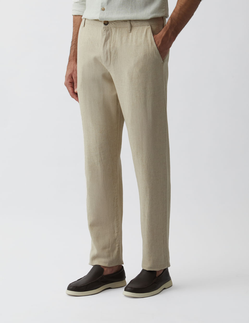 A Calça Trancoso, feita com mix de linho e viscose, oferece leveza e conforto para ocasiões especiais nas estações quentes. Combinando perfeitamente com o blazer da mesma linha, ela pode ser usada com camisas ou T-shirts brancas para um look moderno e sofisticado.