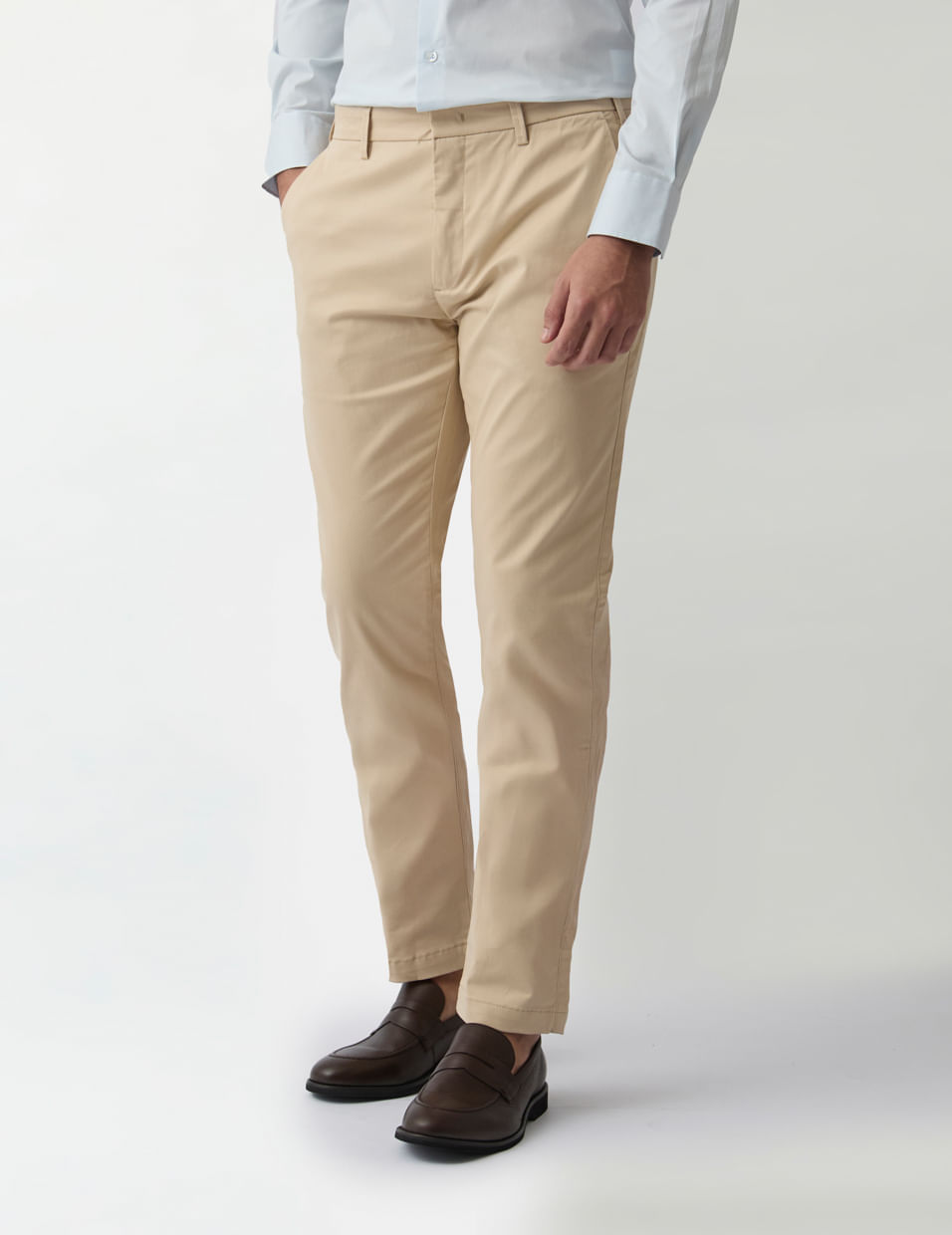 Nossa Calça Chino Premium é feita com tecidos nobres e acabamento impecável. Proporciona um visual elegante e garante sofisticação, perfeita para o trabalho ou momentos que pedem um visual mais formal.