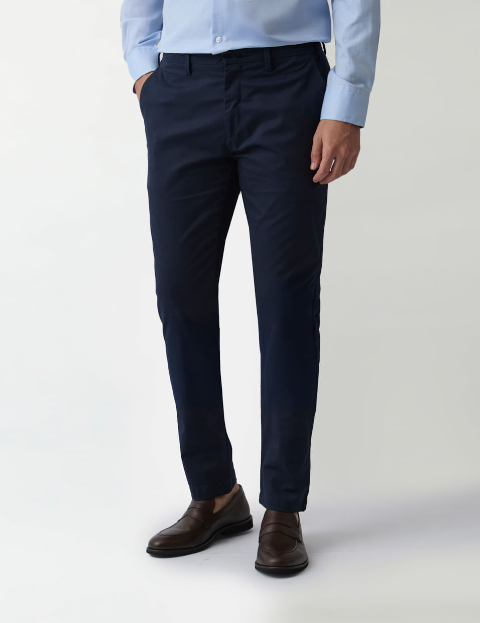 Nossa Calça Chino Premium é feita com tecidos nobres e acabamento impecável. Proporciona um visual elegante e garante sofisticação, perfeita para o trabalho ou momentos que pedem um visual mais formal.