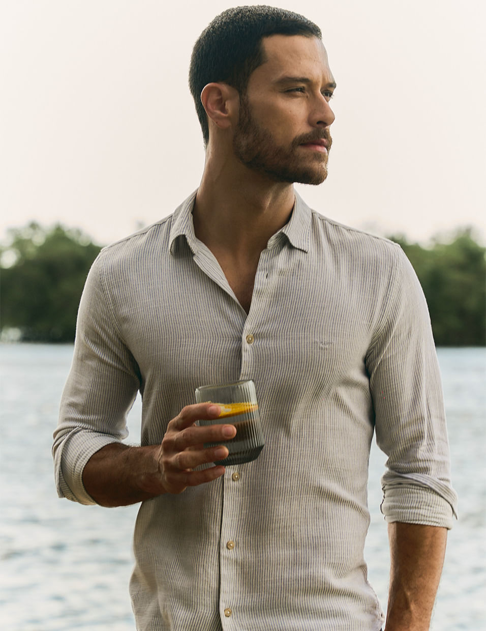 Confeccionada em tecido de fio tinto com efeito mescla leve, esta camisa traz um padrão de listras clássico e discreto que adiciona um toque casual e sofisticado ao visual. Versátil e atemporal, é a peça ideal para compor diferentes combinações do dia a dia.